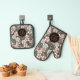 Japanese Black and Red Floral Pattern Personalized Oven Mitt & Pot Holder Set