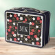 Japanese Black Sakura Blossom Monogram Initials Metal Lunch Box