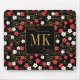 Japanese Black Sakura Blossom Monogram Initials Mouse Pad