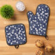Japanese Blue Sakura Cherry Blossom Flowers Oven Mitt & Pot Holder Set