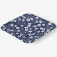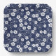 Vector illustration of stylized white sakura cherry blossom flowers and swirls on blue background. Inspired by traditional kimono fabric patterns of Japan.