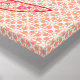 Mixed media digital graphic of a Japanese inspired sitting cat, in a traditional asanoha pattern, against a patterned background - Coral orange, soft peach, coral pink, accented with deep rust red