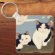 A charming keychain featuring two peaceful Japanese cats resting on a blossoming tree branch in a delicate ukiyo-e inspired composition.