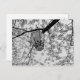Black and white photo postcard of lantern hanging in a blossoming cherry tree.