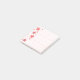 Using this post it note pad for Friday Night Magic. It is perfect and very excited to use it. Will be ordering more. Printing is perfect. Just how it appears online.