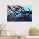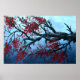 Japanese cherry blossom tree flower oil painting on canvas Japan sakura floral blossums realistic abstract modern art colorful blue red pink brown gray and black large wall art