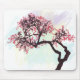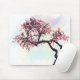 Beautiful Japanese cherry tree in full bloom. The cherry tree blossoms are done in a pale pink. The background is don in pastel colors with a water color look.
