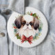 Japanese Chin Christmas Wreath Festive Pup Button