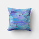 Modern take on a traditional Japanese cloud pattern throw pillow - stylized clouds in silky gradients of soft violet purple, aqua, and pale blue, accented with glimpses of deep cobalt blue twilight sky