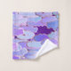 Towel set patterned with stylized clouds in silky gradients of soft violet purple, aqua, and pale blue, accented with glimpses of deep purple twilight sky. In Japanese traditions, clouds represent elegance and high status. In Buddhism, clouds signify the ‘Western Paradise’ beyond earth