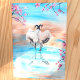 Tancho red top cranes dance underneath Spring cherry blossoms. Japanese style, sakura wedding artwork symbolizes longevity for the bride and groom. Red crowned cranes are beautiful with Spring pink cherry blossoms. Acrylic artwork shows tancho cranes dancing on beautiful water puddle with swirls of soft beige. Asian cranes wedding theme painting is versatile for blue, turquoise, pink, and red wedding color palettes. This is also a beautiful choice for a Valentine's Day themed wedding.