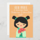 A party invitations suitable for a Japanese themed made in Japan sushi party. Cute traditional kokeshi dolls art style illustration is colorful and the background color and text can be changed to suit your taste.