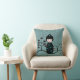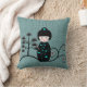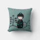 Japanese Doll Black and Blue Polka Dot Throw Pillow