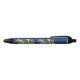 Very nice blue, or black ink pen. I will be buying more. The print was fine. I can easily see the print. The flowers look great.
