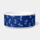 Pet bowl in a traditional Japanese dragonfly, or tombo pattern, also called katsumushi (“winning bugs”) by samurai warriors, who used dragonfly motifs to invoke victory - light sky blue dragonflies on a dark cobalt / navy blue background