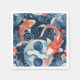 Blue orange watercolor yin yang style illustration from Japanese fish in a pond.