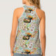 Women's All-Over Print Racerback Tank Top, White Piping, S