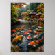 This stunning image of a Japanese garden and koi pond will look amazing on just about any wall.