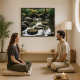 Tranquil water art poster for those who love japanese wall art. View of a Zen garden with aligned stones and green water plants in the background. You can customize the poster by changing the color shade. Poster available in various sizes, with or without frame. Instant download available at a discounted price.