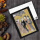 This elegant vintage image has four Japanese Geisha Ladies. They are dressed in black and tans. The background is a golden yellow with a black border. See my store Art by MAR for matching products with this design.