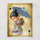 Japanese girl in kimono inspecting her geta while holding an umbrella. From the Japanese Themed Playing Cards Collection