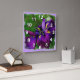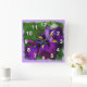 Wall clock with a rough squared image of a deep purple Japanese iris in bloom. Customizable ~ add text by clicking "Customize it!" ~ background color may also be changed by choosing edit>background and then choosing a color from the chart. © Little Wing Photography & Design