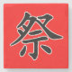 This stone coaster features the Japanese character (kanji) for the word Matsuri, which means Festival, on a festive red background.