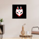 Stylized red, black, and white fox mask inspired by traditional Japanese kitsune mask.