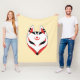 Japanese Kitsune Fox Mask on Yellow Fleece Blanket