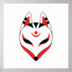 Stylized red, black, and white fox mask inspired by traditional Japanese kitsune mask.