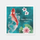 A beautiful Japanese styled birthday part napkin design featuring a Koi Fish swimming in a pond with a lily pad and floating cherry blossoms. Features the text "Happy Birthday" followed by a name. If you need assistance with personalization, or additional items with a custom design, feel free to contact me using the message button.