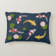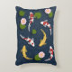 Beautiful minimalistic vector illustration of colorful Japanese koi fish swimming among the water lilies in a pond. Koi is a brightly colored ornamental variety carp domesticated in Japan.