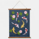 Beautiful minimalistic vector illustration of colorful Japanese koi fish swimming among the water lilies in a pond. Koi is a brightly colored ornamental variety carp domesticated in Japan.