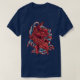 Japanese Koi Fish. Vibrant red koi fish swimming amidst swirling blue waves. A delicate pink flower is positioned near the fish's head, adding a touch of elegance to the scene. The koi is drawn in a detailed, almost tattoo-like style, with intricate scales and flowing fins. The background is a simple gray, allowing the colorful fish and waves to stand out.