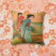 At a glance this image has the appearance of a woodblock print. Upon closer examination you will notice the graceful dot pattern of a stone chromolithograph of the Victorian period. The gentle colors and design illustrate a Japanese lakeside scene with two geishas and a boat. The willow trees and the apricot sky frame the colorful image. It is a delightful design for decor, personal correspondence and accessories. It invites your personal touch.
