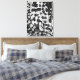 Wrapped canvas in a vintage Japanese kimono print - an all over pattern of stylized leaves, alternating positive and negative space, in classic black and white