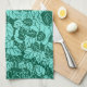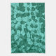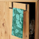 Vintage Japanese kimono print tea towel - an all over pattern of stylized leaves, alternating positive and negative space, in deep turquoise / peacock and light aqua