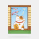 Vector illustration of a maneki-neko, literally translated from Japanese as “beckoning cat”. This traditional Japanese figurine is believed to bring luck and prosperity to its owner. They are often called lucky cats as well. This particular one is a cute cartoon version of a Calico Japanese Bobtail with its left paw raised in Japanese beckoning gesture and its right paw holding a gold koban coin. Blooming ume tree and furin glass wind chime complete the simple background.
