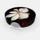 Protect your tabletops and fine furniture from drips and stains with this set of 4, acrylic beverage coasters that feature the photo image of a large, cream colored Japanese Magnolia blossom set on a dark color background. A lovely, floral design! Select your coaster style.