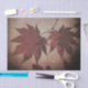 A faint script under fallen, autumn, japanese maple leaves. They come in four color schemes.. Natural yet elegant.