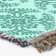 Throw in a classic Japanese kimono pattern of stylized, four-way, medallions of leaves and flowers in deep turquoise on a soft aqua background
