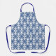 Apron in a classic Japanese kimono pattern of stylized, four-way, medallions of leaves and flowers in deep cobalt blue on a white background