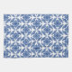 Kitchen towel in a classic Japanese kimono pattern of stylized, four-way, medallions of leaves and flowers in deep cobalt blue on a white background