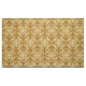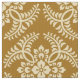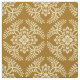 Fabric in a classic Japanese kimono pattern of stylized, four-way, medallions of leaves and flowers in light yellow on a deep mustard / golden yellow background