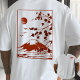 Bring serenity to your style with this elegant Japanese-inspired mountain design, featuring a crimson sun, soaring birds, and cherry blossoms framing a peaceful landscape. The minimalist red line art evokes the timeless beauty of traditional woodblock prints while maintaining a modern, clean look perfect for daily wear.