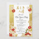 The Japanese reads "Beautiful Life". The red, gold and white flowers are cherry blossoms, plum blossoms and mum with Japanese patterns call KIkou in gold in a gradient of god and Unryu patterns in the background. A photo in the back is able to customize with your photo. All of texts are customizable. This is a digital illustration.