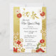 The Japanese reads "sho-shun" that is a popular new year's greeting phrase and that means early spring in English. The red, gold and white flowers are cherry blossoms, plum blossoms and mums with Japanese patterns call KIkou in gold in a gradient of god and Unryu patterns in the background. All the black texts are customizable. This is a digital illustration.