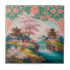 Japanese Pagoda & Cherry Blossom Chinoiserie Tile