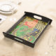 This is a well made, sturdy wooden tray with a flawless black finish and lovely map on the tray surface. It is both vintage & modern at the same time. Looks exactly like the photo; does not disappoint. So nice to find something of quality individually made and not the mass-produced 'shabby chic' merchandise seen in stores. I am so pleased to be able to give this to my college-age niece for her birthday. This can be used as a tray to hold jewelry or toiletries, or hung on the wall as art. The map surface is sealed (it is slightly shiny) so would be moisture resistant. It is well worth the asking price but I was able to apply a sale code as well. Very happy with my purchase. Map is crisp & clear and sealed with a water-resitant finish.