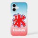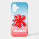 This fun phone case features the Japanese kanji symbol for ice, pronounced "koori," on a colorful blue-to-red background, inspired by a cool summer snow cone treat! Your own name appears in white at the bottom... just type your name into the box above and watch the case change!